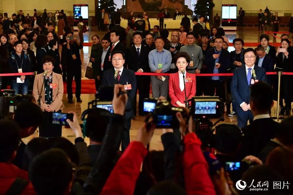 3月3日下午2时,全国政协十三届二次会议首场“委员通道”在人民大会堂一层中央大厅北侧举行。