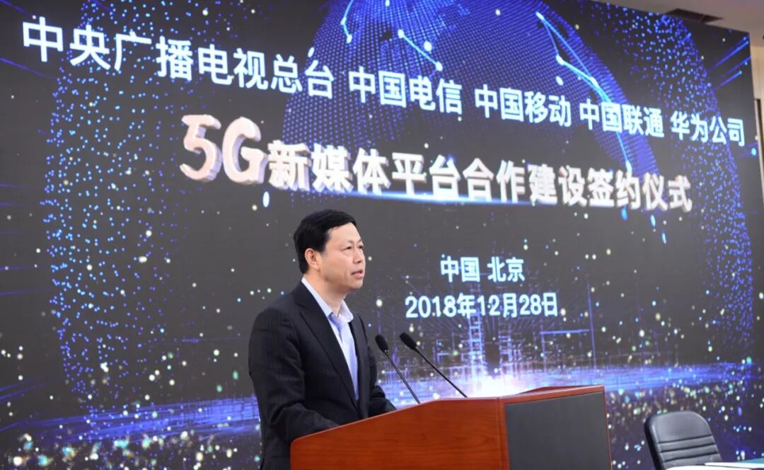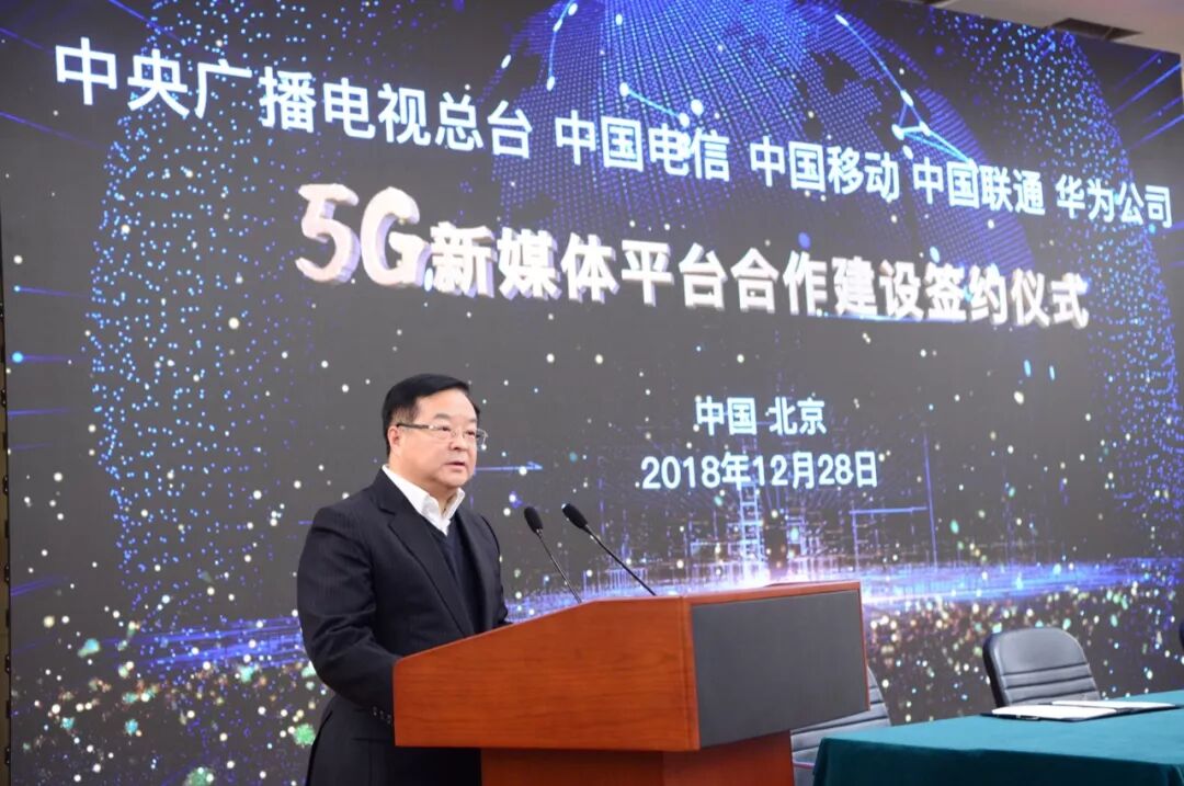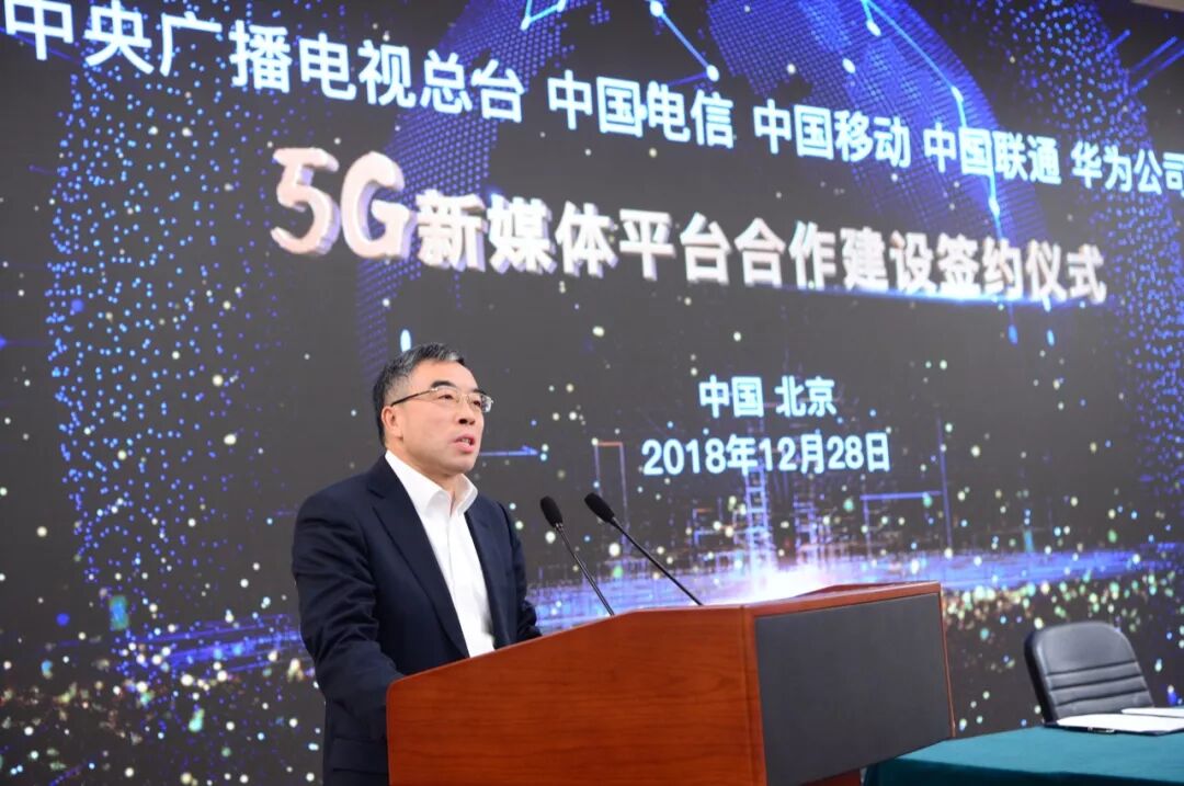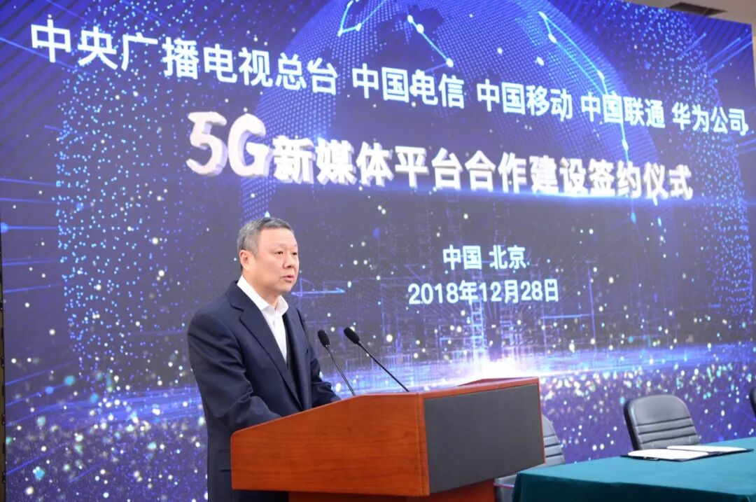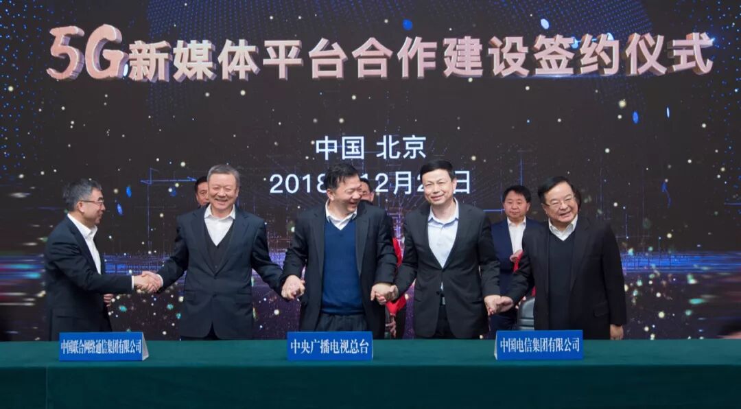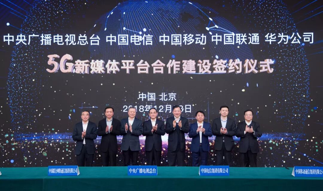 12月28日,我国第一个基于5G技术的国家级新媒体平台在中央广播电视总台开建。当天,中央广播电视总台与中国电信、中国移动、中国联通及华为公司在北京共同签署合作建设5G新媒体平台框架协议。